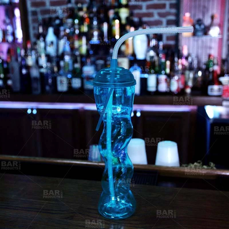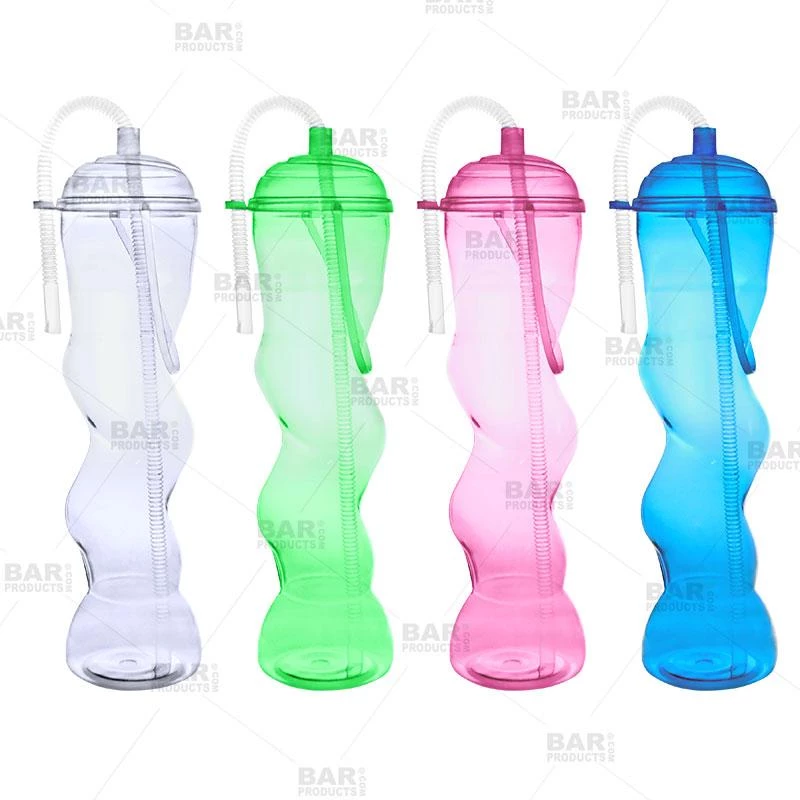 Check out these fun 22 ounce BarConic® Twisted Party Yard Cups! They’re sure to bring excitement to any party at your home or event at your bar. Bright, colorful, and exciting, these Twisted Party Yard Cups are will rake in the cash for for any lively bar. They’re the best vessel for signature frozen mixes and other specialty drinks. These Party Yards come with a screw-top lid, durable bendy straw, colorful handle, and a loop for holding down the straw. They make for an unforgettable souvenir! These Party Yards are available in green, clear, blue, and pink. Straws, handles, and screw-on lids are all included.