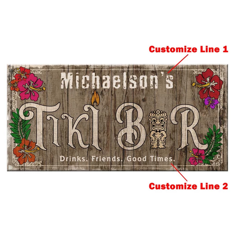 Home and bar decor can certainly set the tone for your family and guests. They can also make for great conversation pieces! This tiki-inspired wood sign will do just that. It comes in multiple colors, and the best part is that it is completely customizable!