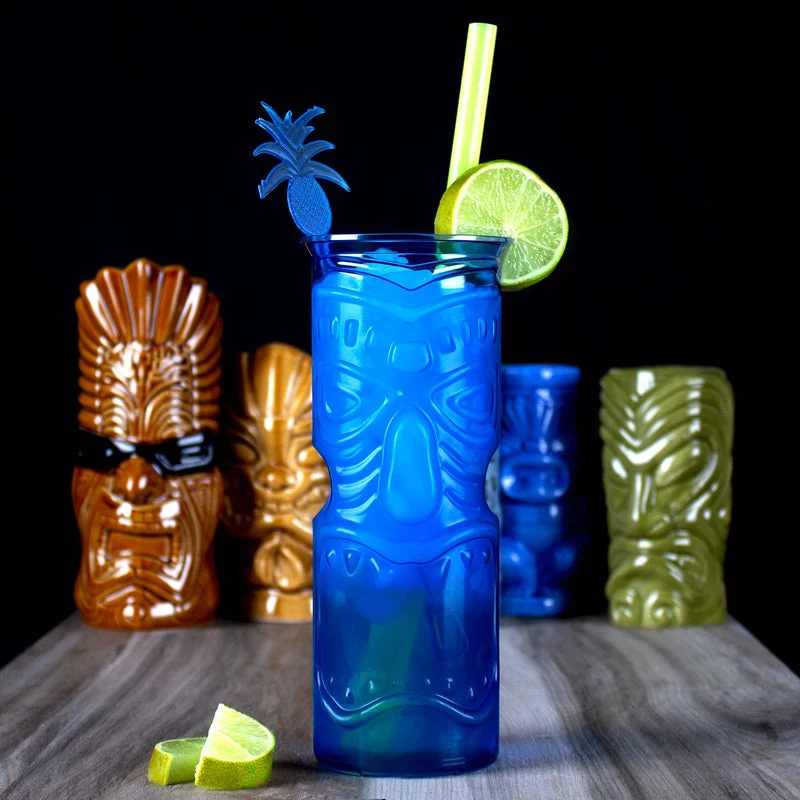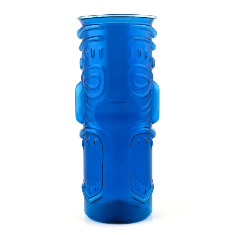 This fun tiki cup is the perfect cup to make your colorfully tropical drinks in. These cups are made of high quality durable plastic material that wont easily break and they feature an embossed tiki face design showcasing a slightly transparent blue color. This cup is 8 1/2 inches in height with a 3.25 inch diameter and can hold 32oz of liquid. The tiki mixology trend is showing no signs of slowing down and we feel it is here to stay. Stock up on these great reusable tiki cups and enjoy one of the best movements in modern mixology.