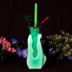 Discount ✔️ Bars BarConic® Tiki Cup – Green Plastic W/ Lid And Straw – 24oz ✨
